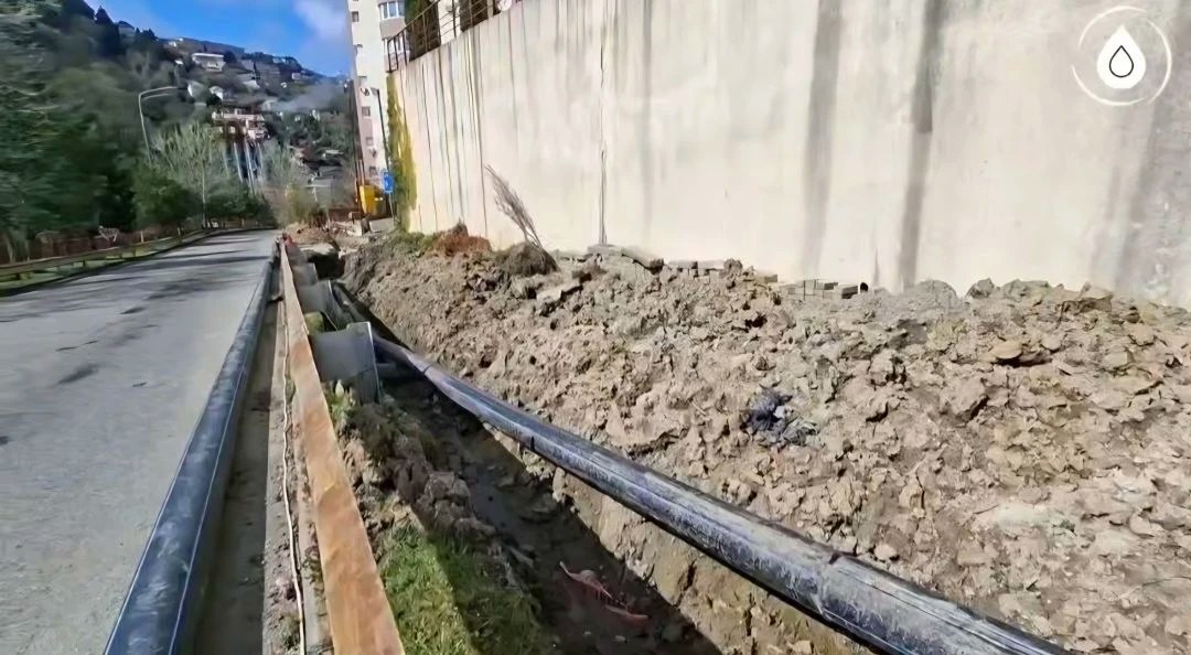 Уже выполнено разрытие траншеи длиной 77 метров. Кроме того, два трубопровода диаметром 225 мм были заменены на современные полиэтиленовые низкодавлевые трубы, обеспечивающие устойчивость к коррозии, перепадам давления и подвижкам грунта.